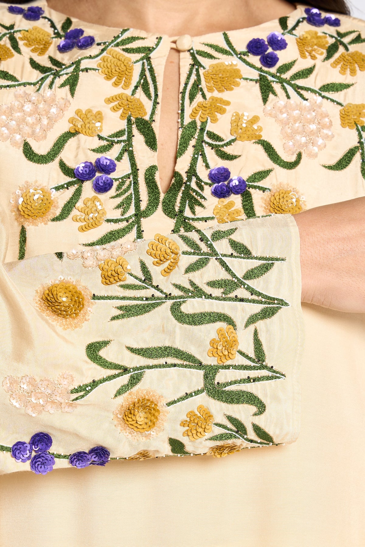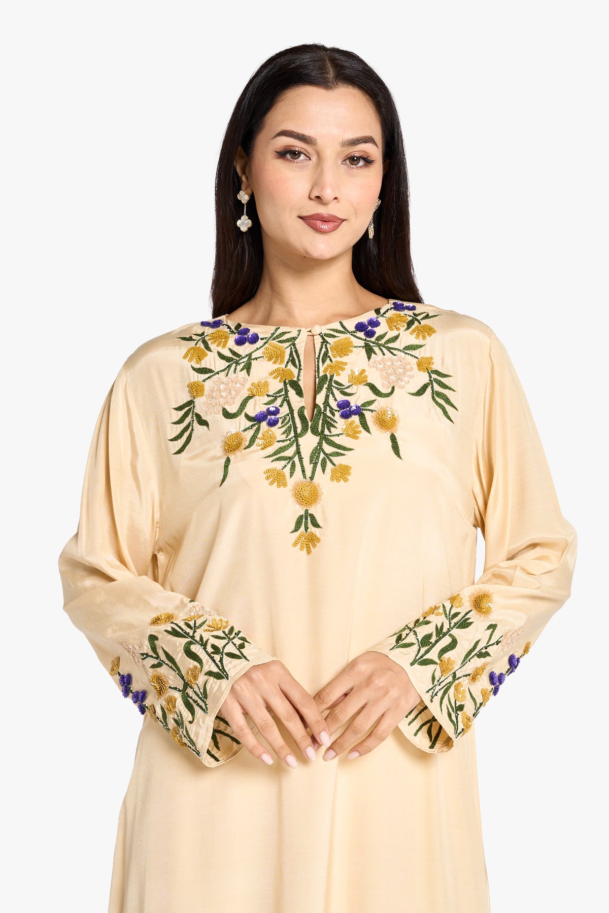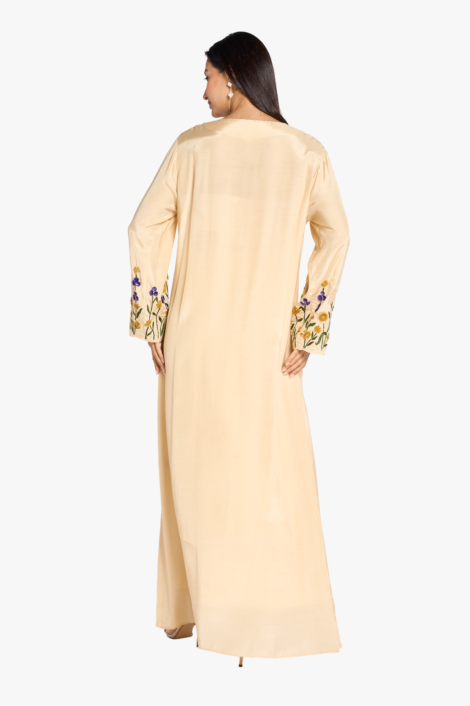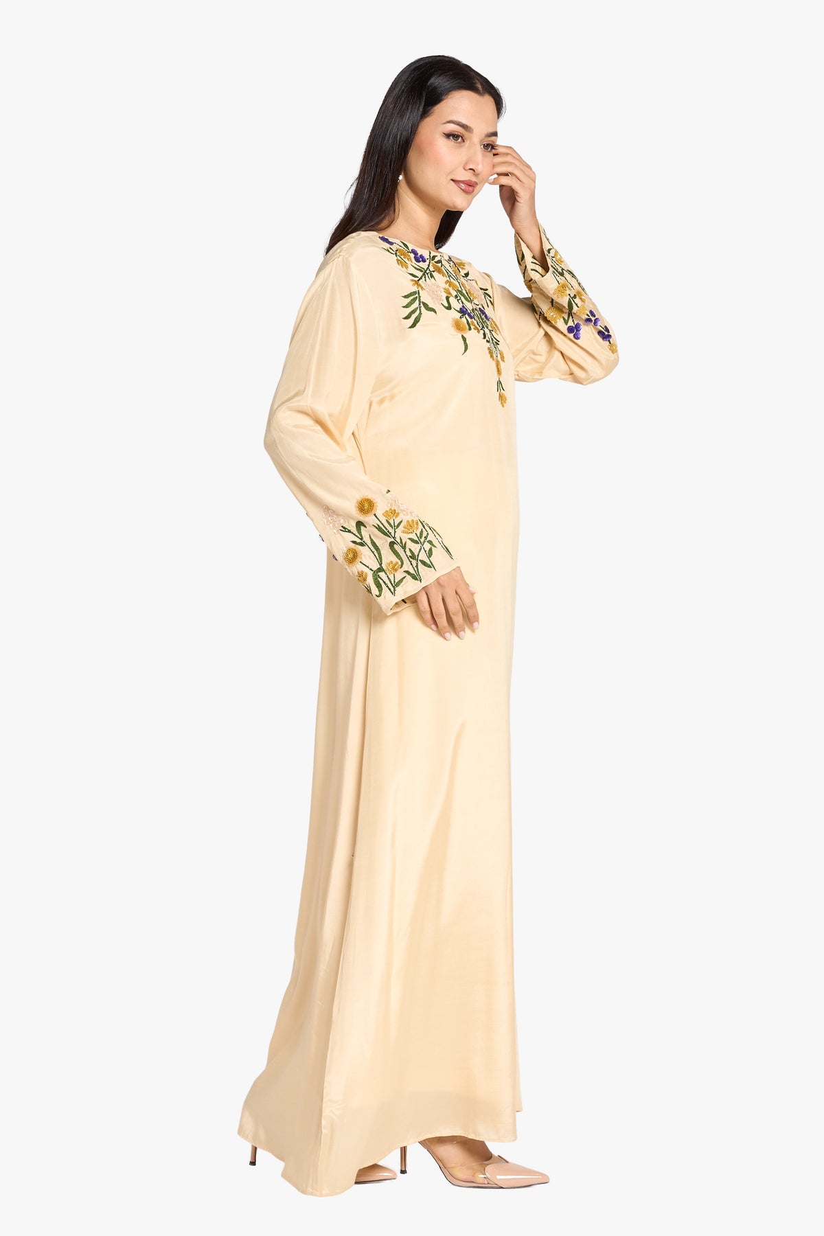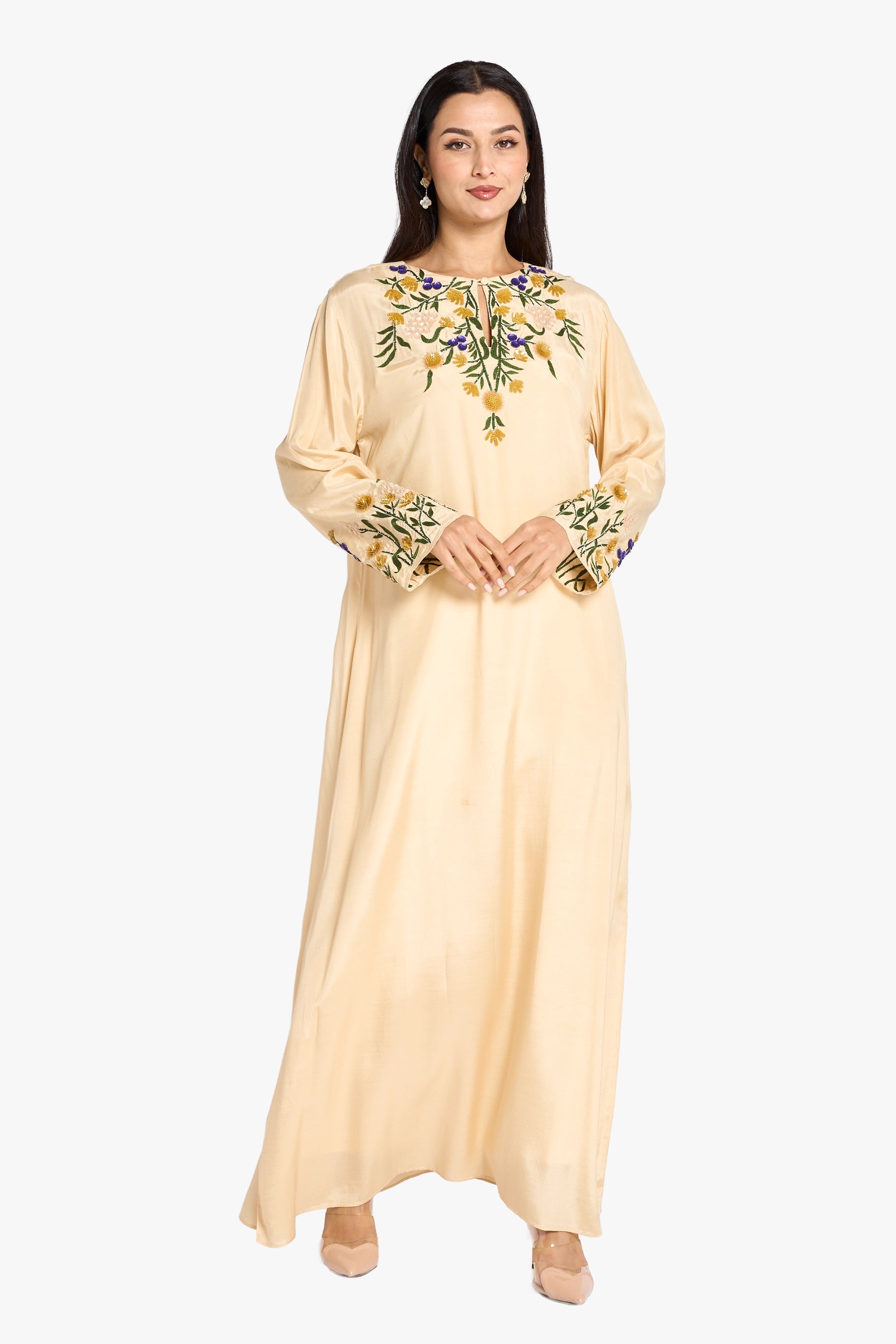 Louzan Jalabiya Linen Handwork Kaftan – Yellow