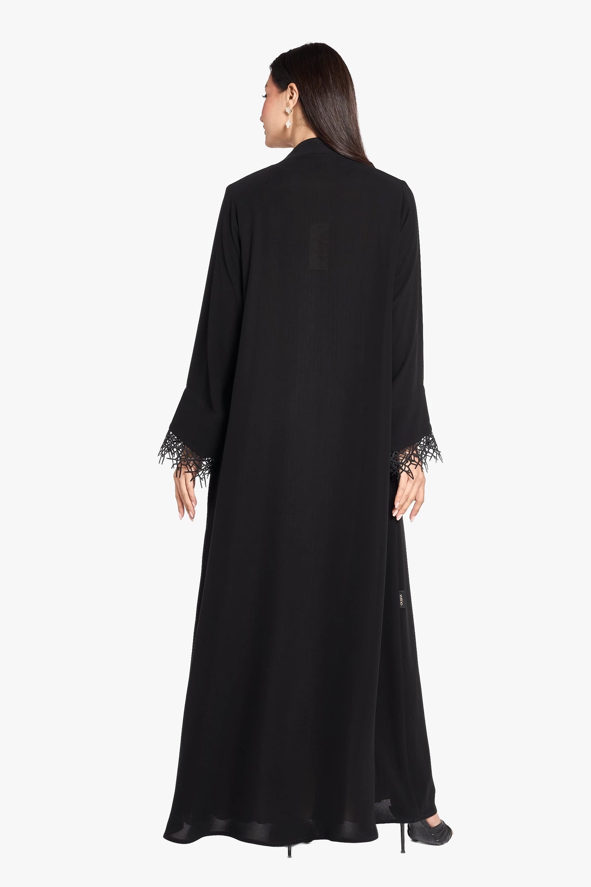 The OUSHA ABAYA is designed for daily wear, featuring a smooth, lisse fabric that ensures comfort and effortless elegance. Its clean lines and refined texture make it an ideal choice for those seeking a polished yet practical abaya for everyday use.