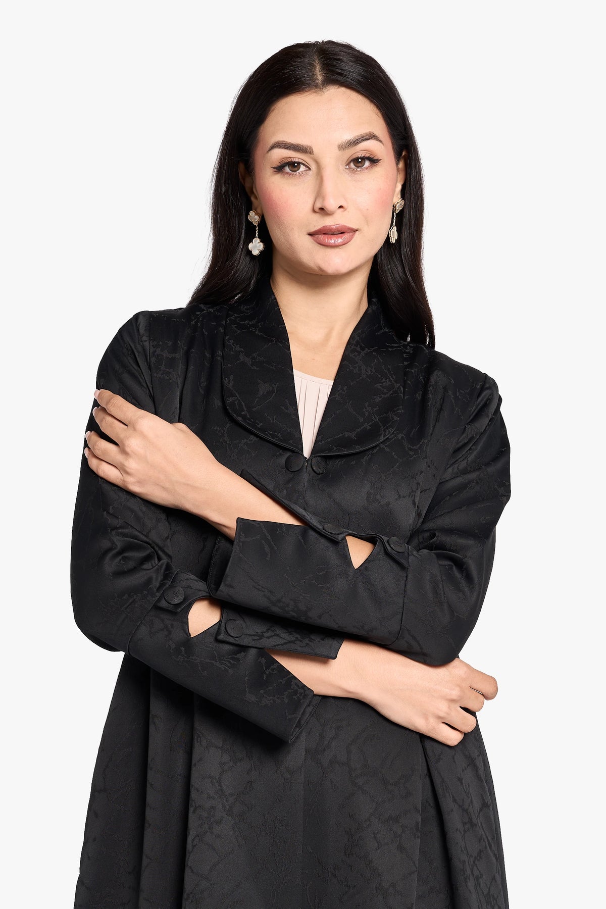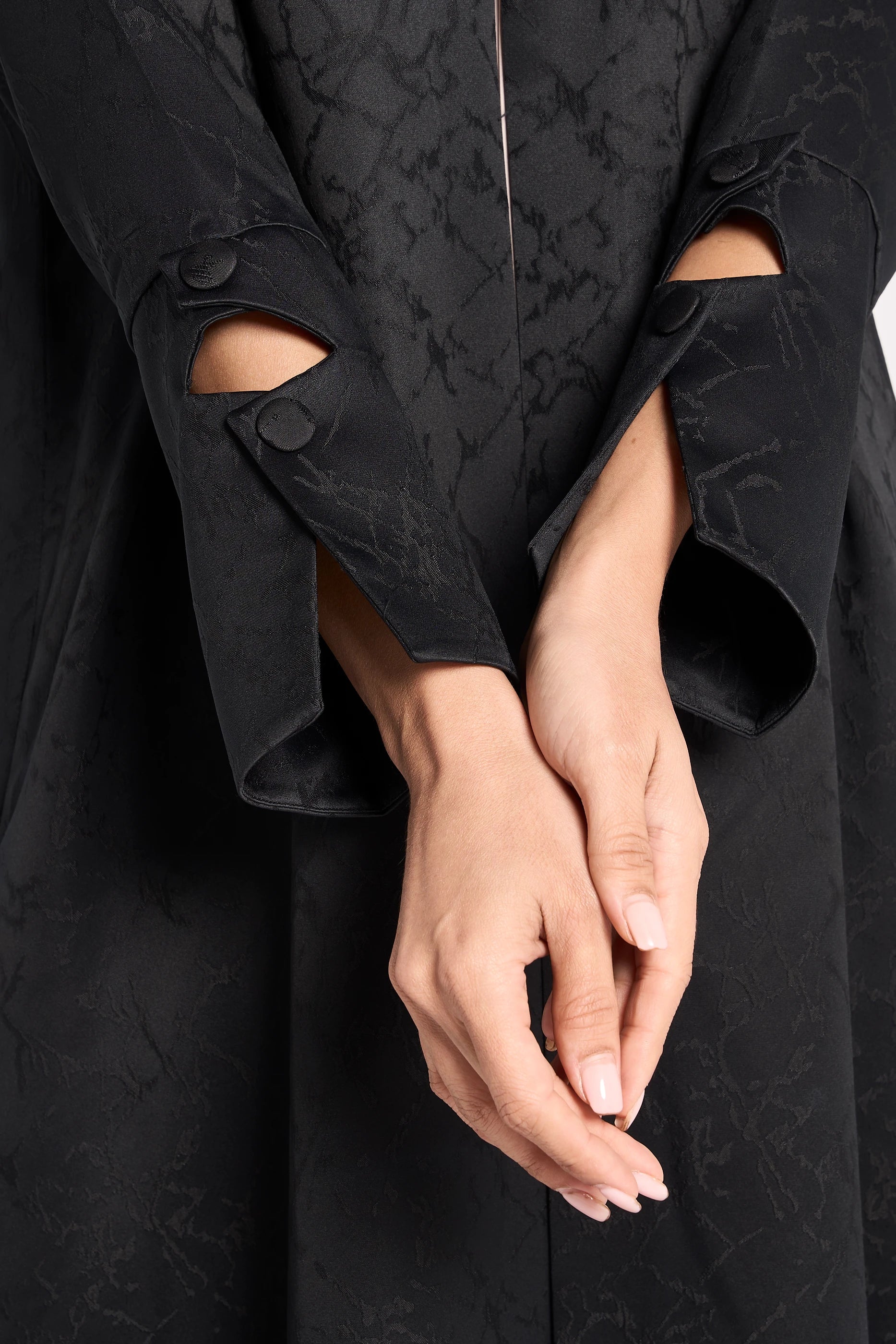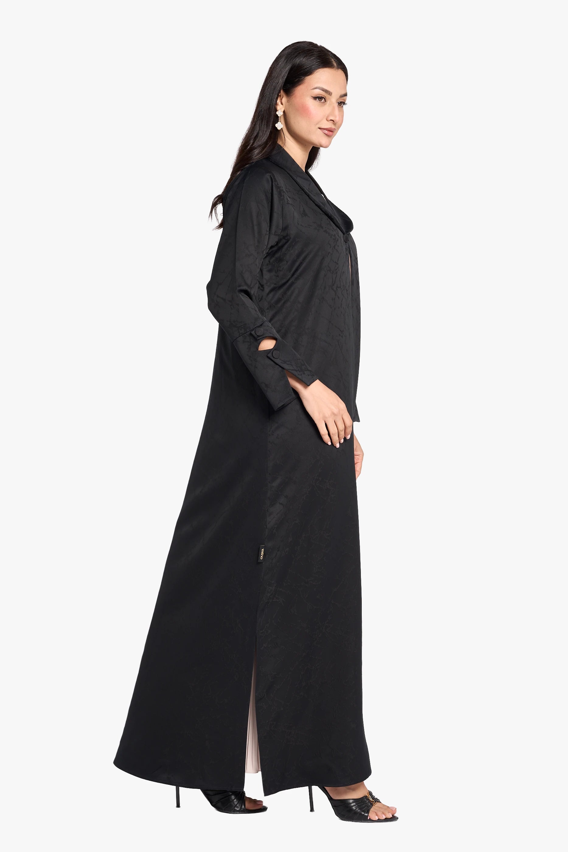 The OUSHA ABAYA features a contemporary sleeve cut designed for daily comfort and style. Expertly tailored, this abaya balances modern detailing with traditional elegance, providing a distinctive yet practical garment perfect for everyday wear.