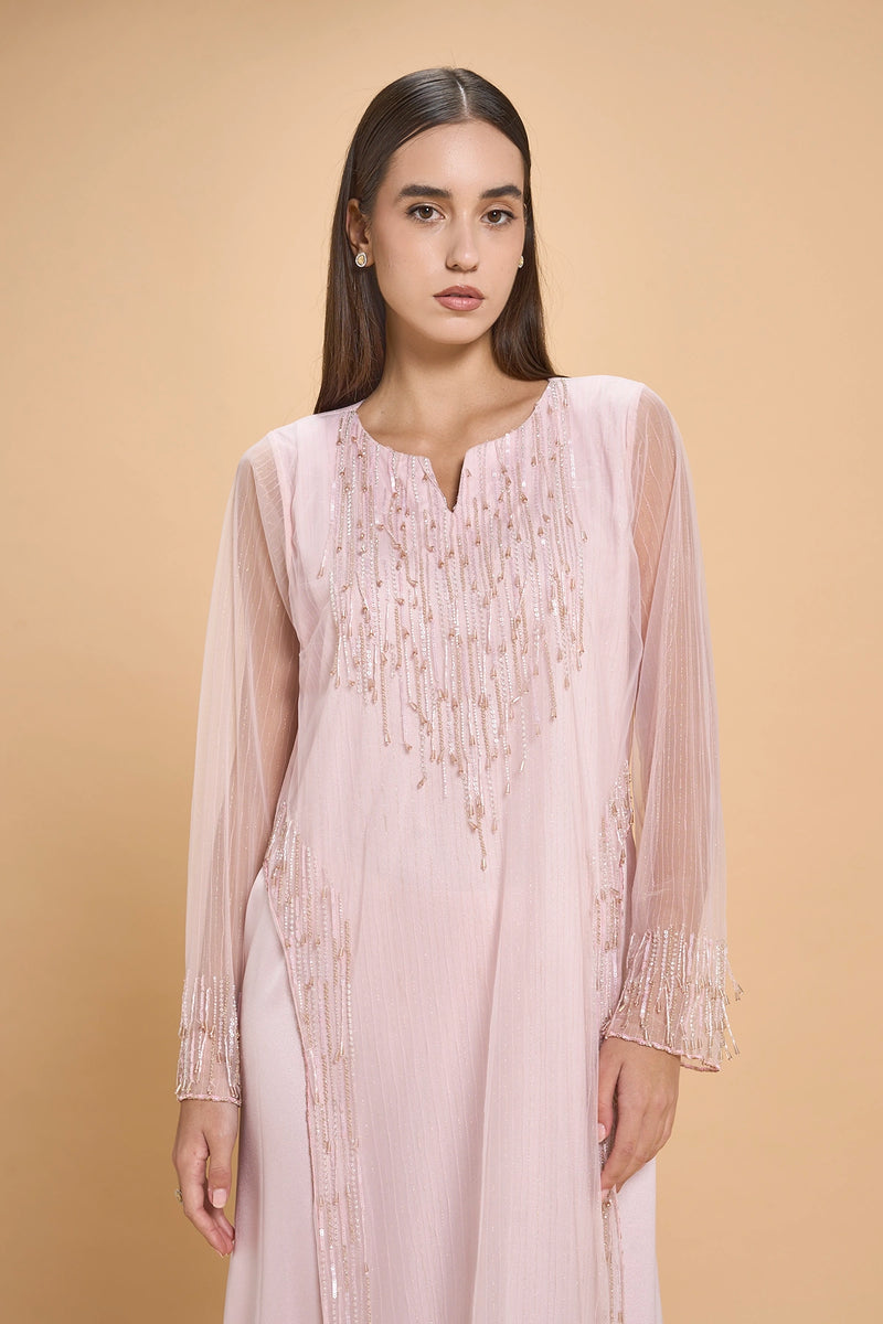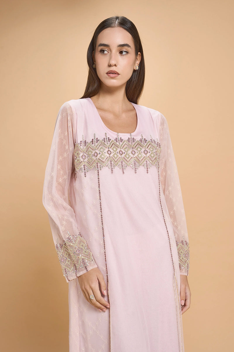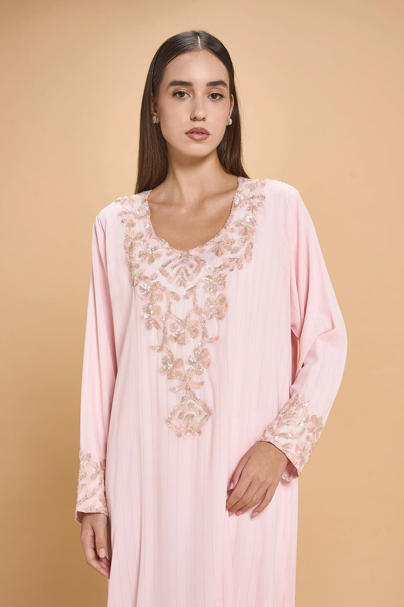 Party Wear Jalabia With Crystals And Embroidery -Pink