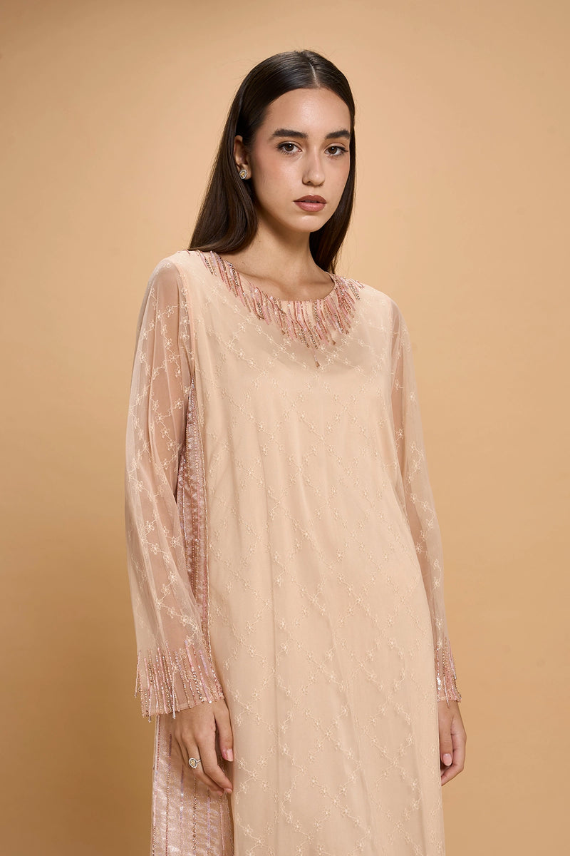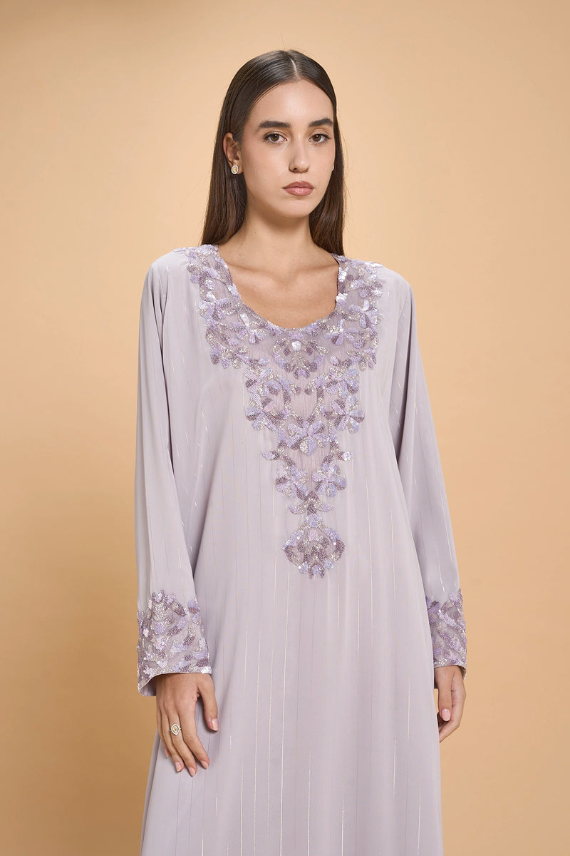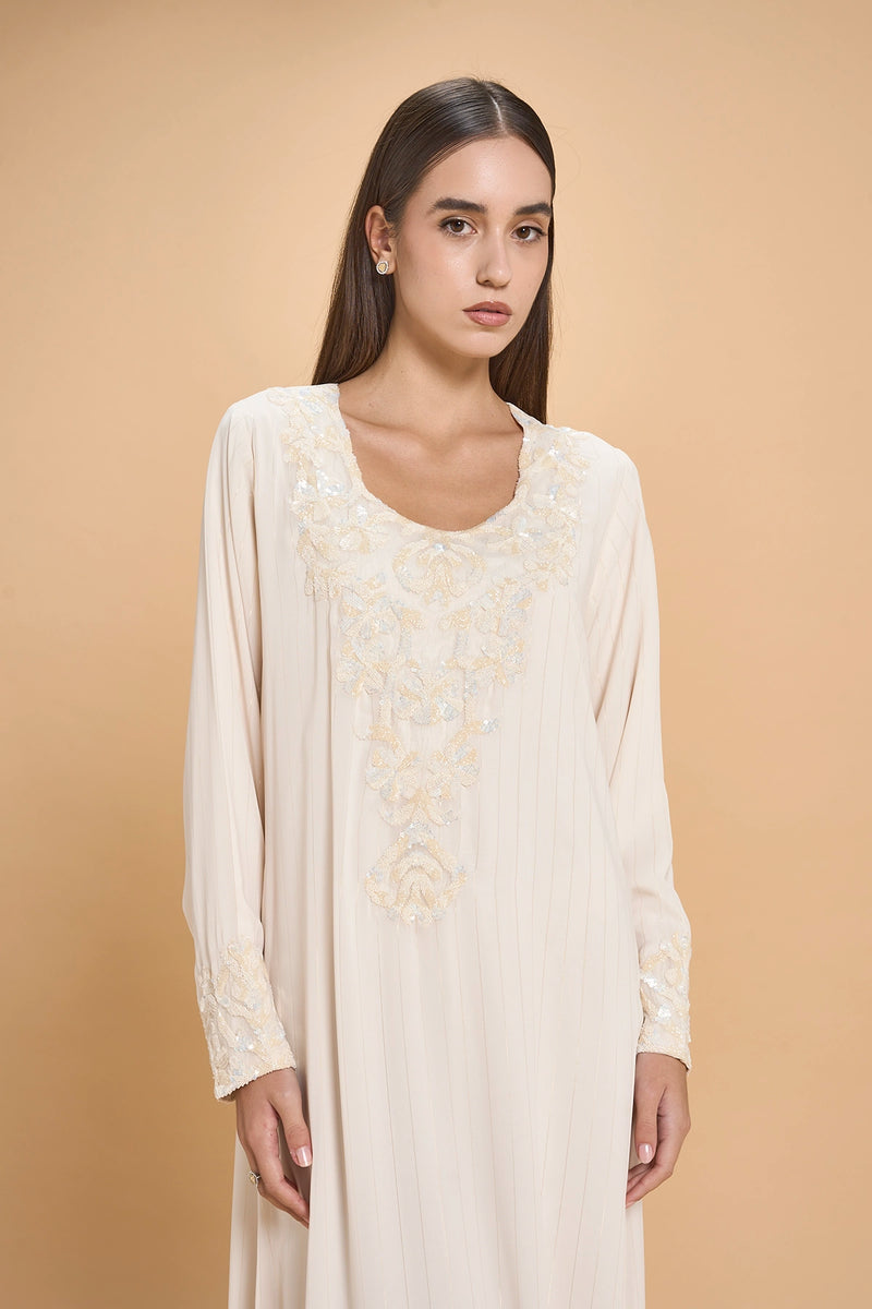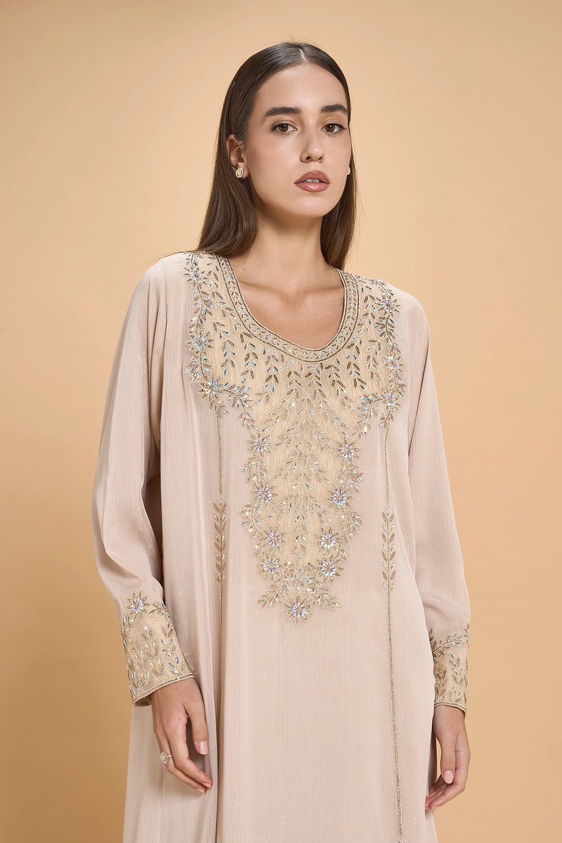 Daily Wear Jalabia With Embroidery And Crystals -Beige
