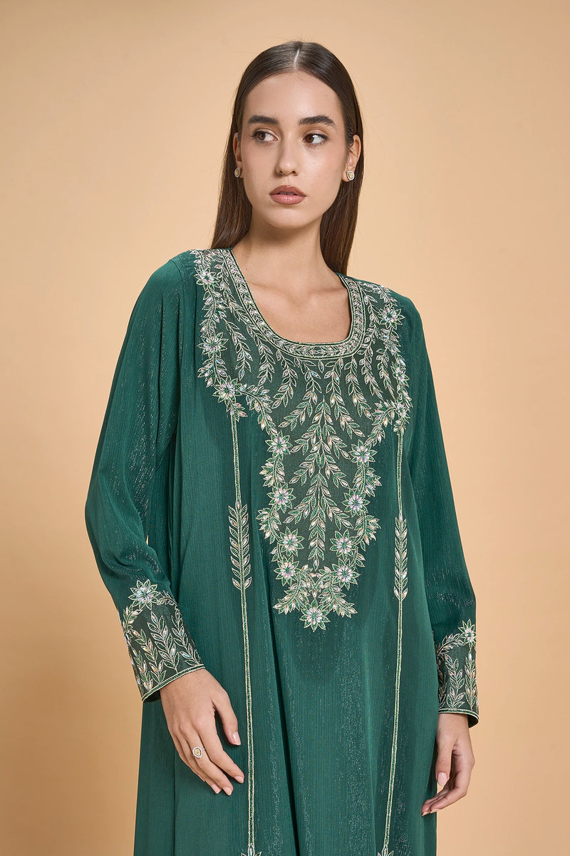 Daily Wear Jalabia With Embroidery And Crystals -Green