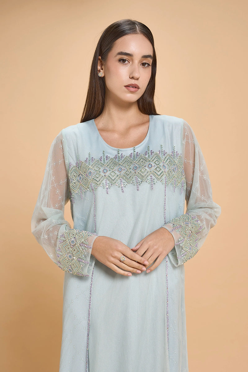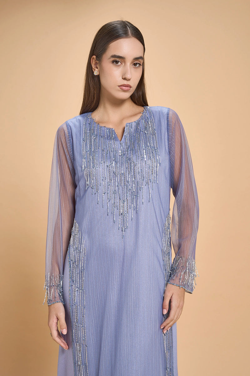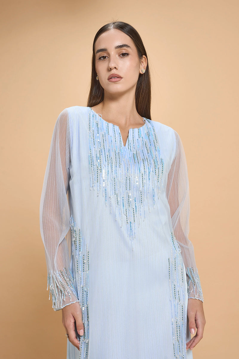 Party Wear Jalabia With Crystals And Embroidery -Blue