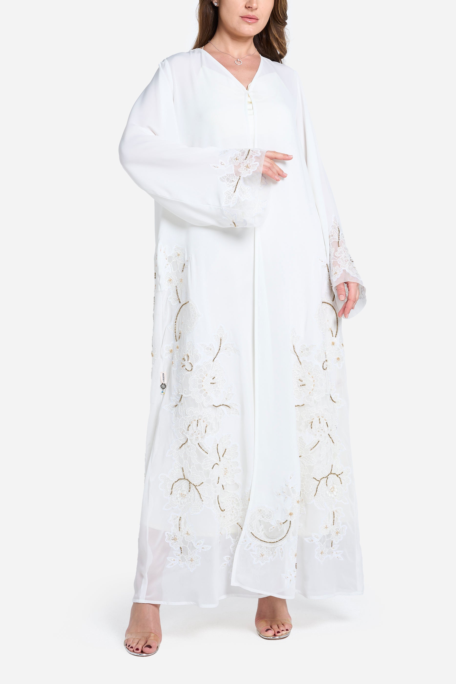 Elevate your modest fashion with our exquisite hand-embroidered Louzan abaya. Meticulously crafted with elegant color details and delicate handwork that showcases traditional artisanship. This sophisticated piece effortlessly combines timeless grace with contemporary style, perfect for special occasions or refined everyday wear.
