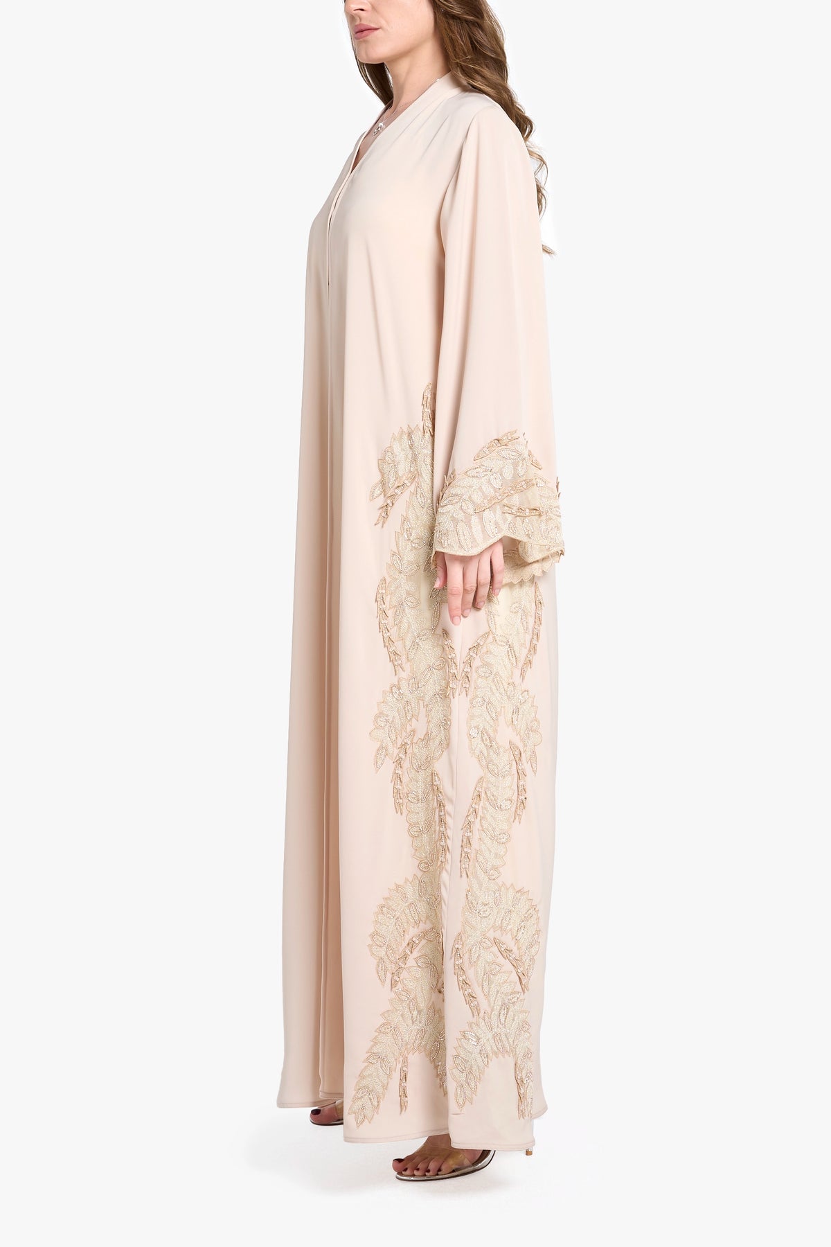 Elevate your modest fashion collection with our exquisite hand-embroidered Louzan abaya. Each piece is meticulously crafted with elegant color details and delicate handwork, showcasing traditional artisanship passed down through generations. This sophisticated garment effortlessly combines timeless grace with contemporary style, making it perfect for special occasions while remaining versatile enough for refined everyday wear. The thoughtful design honors modesty without compromising on elegance.