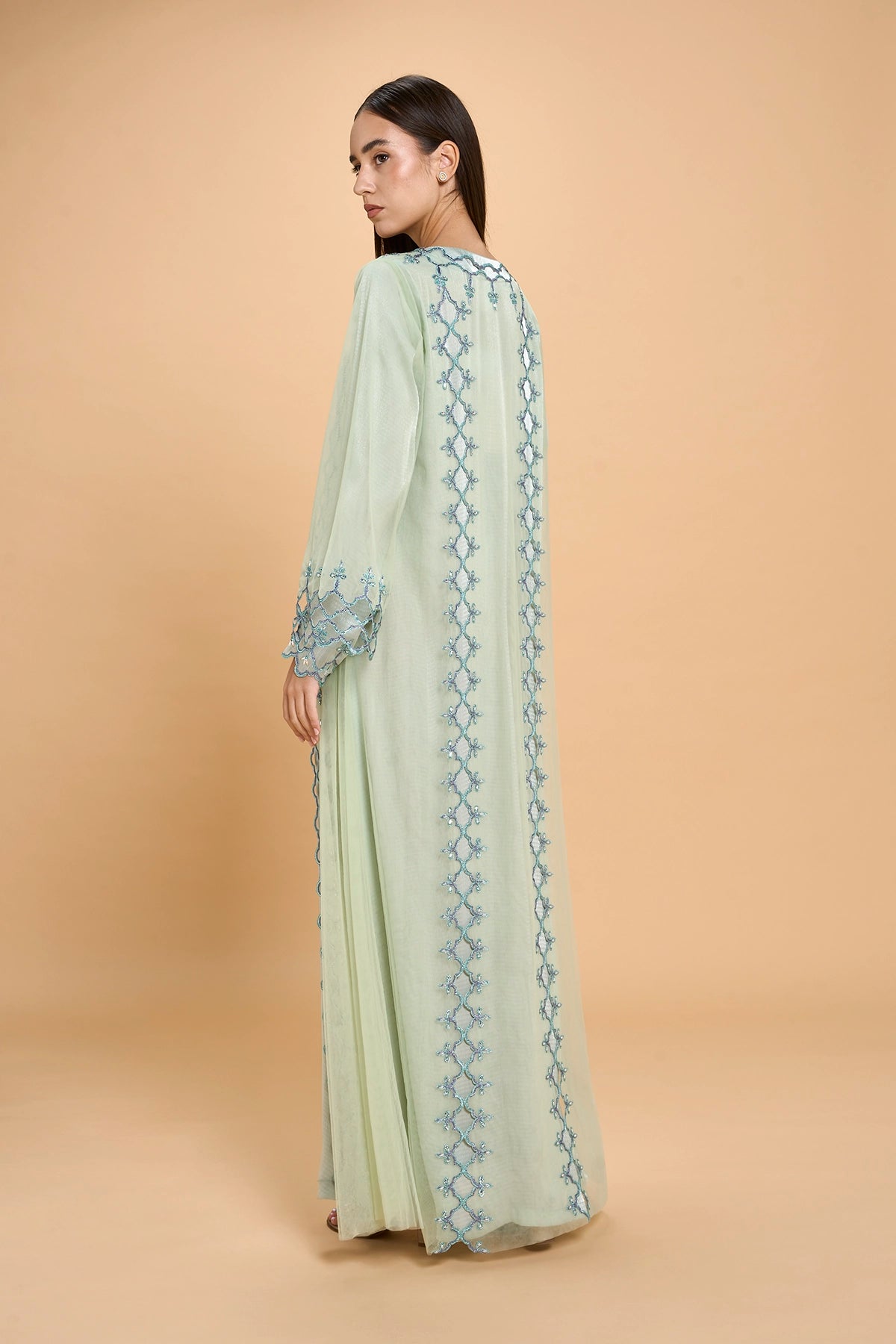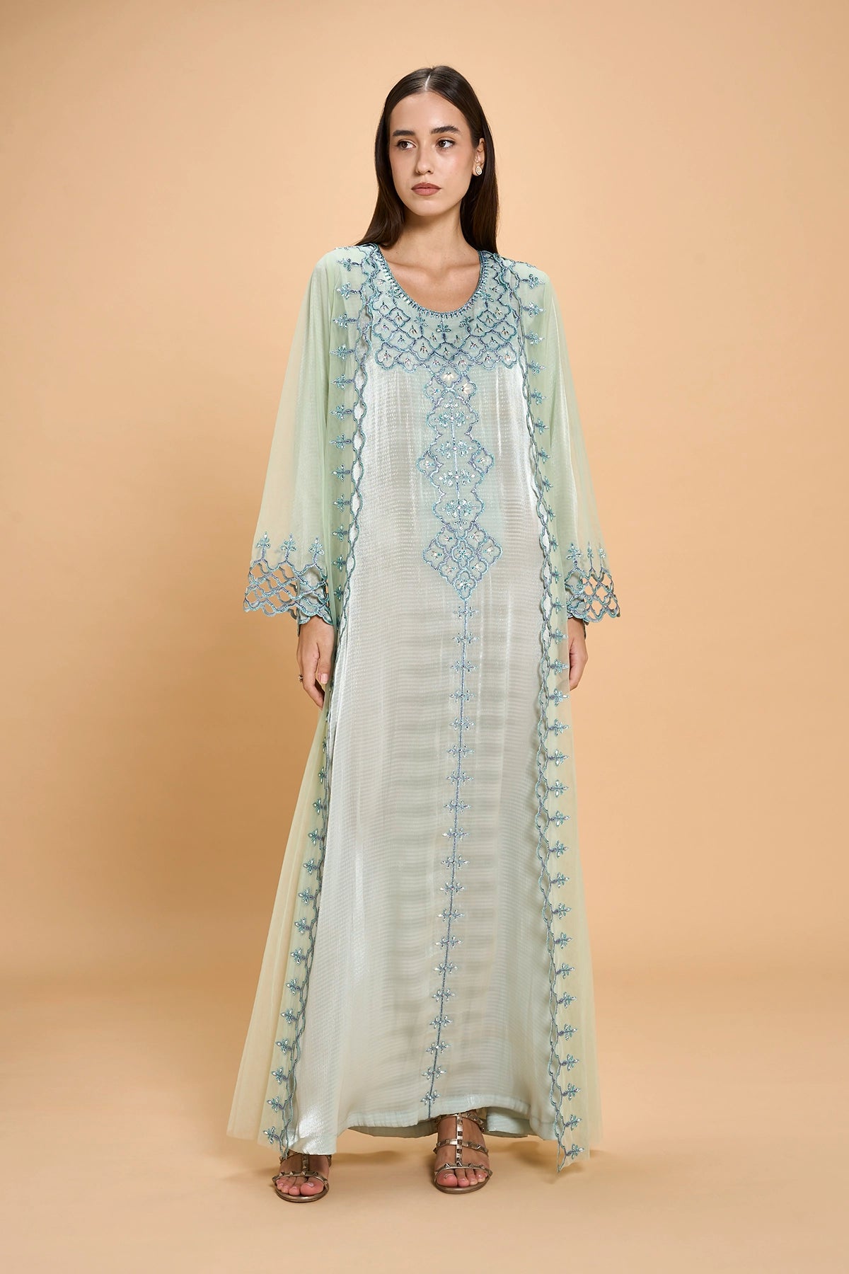 Party Wear Jalabia With Crystals And Embroidery -Green