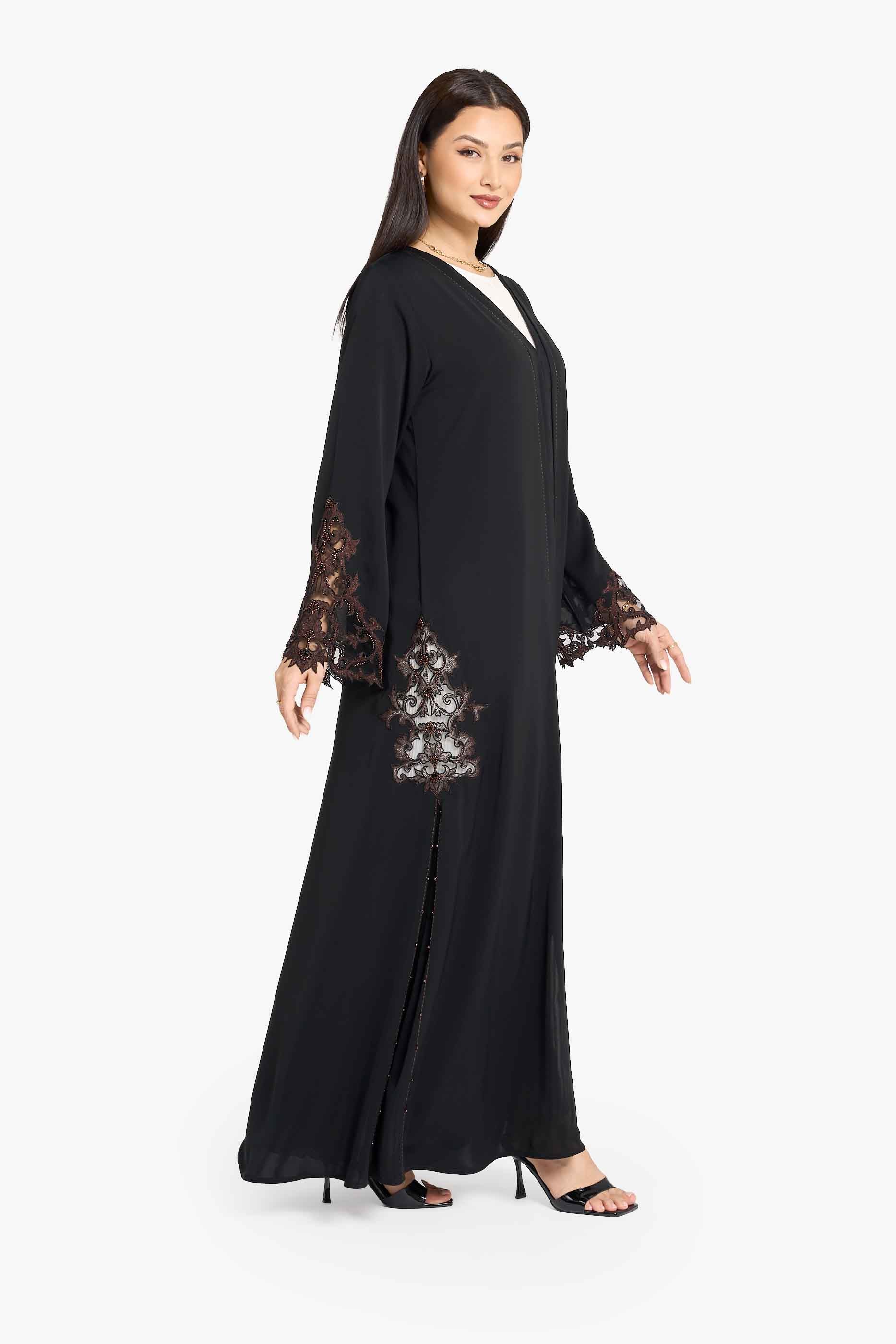 Louzan Lace Panel Open Front Abaya