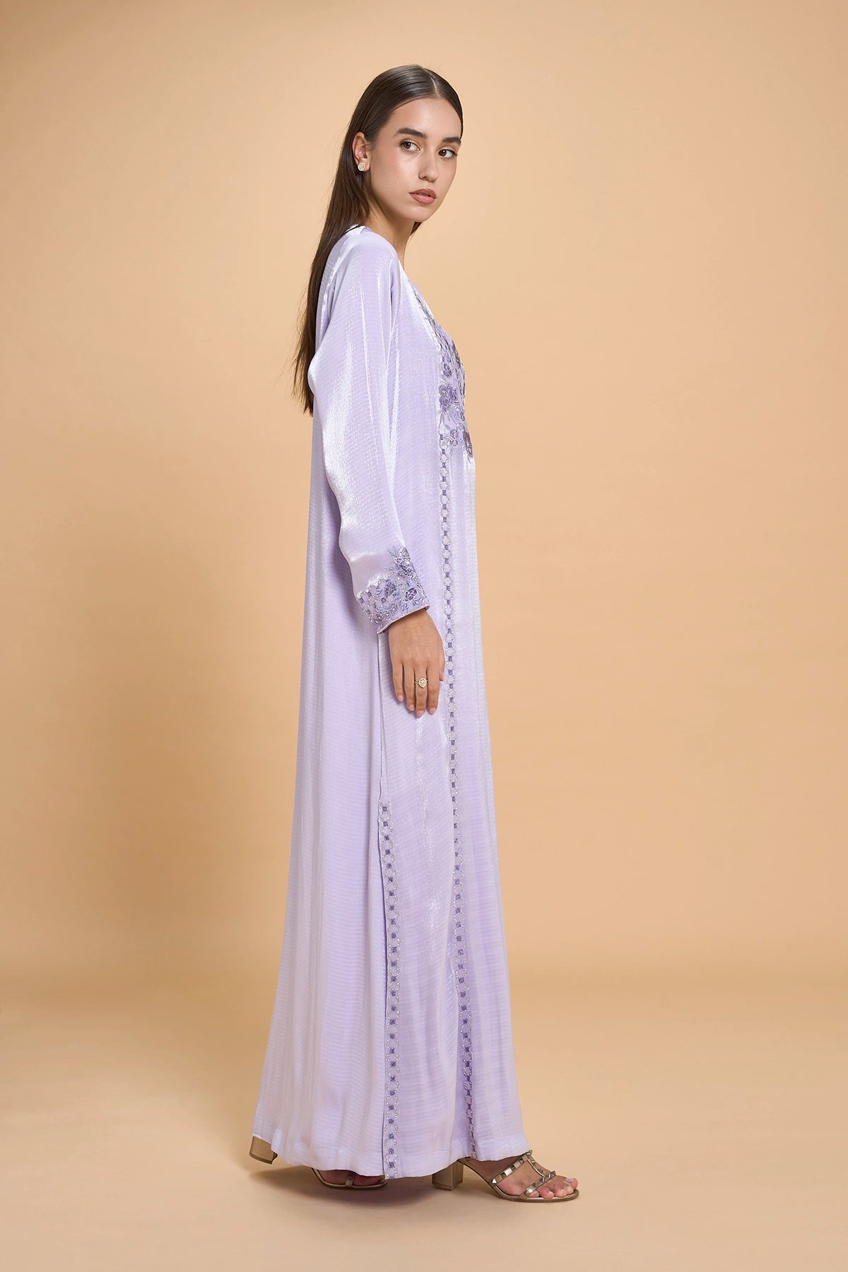 Daily Wear Jalabia With Embroidery And Crystals -Purple