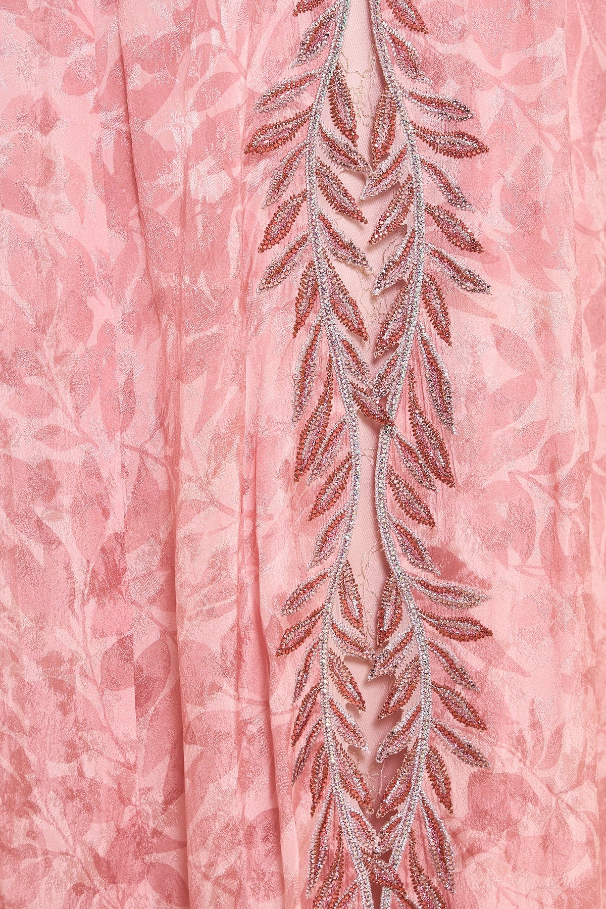 Two Front Slits Extend To The Knee, Revealing A Layer Of Lace Beneath The Viscose, Creating A Subtle Interplay Of Texture And Movement. The Blend Of Printed Fabric, Embroidered Detailing, And Lace Underlay Gives The Piece A Distinctive, Elevated Presence Ideal For Special Occasions Or Standout Moments.