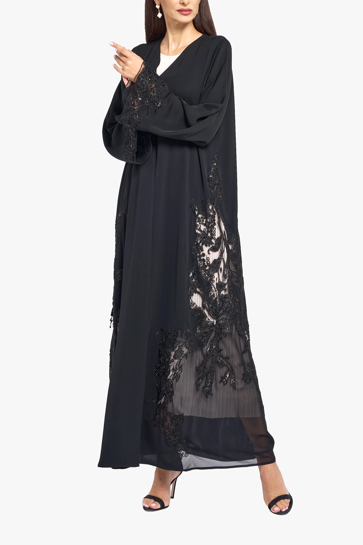 The Louzan Abaya is an elegant VIP piece featuring exquisite handwork that elevates its design with refined craftsmanship. Ideal for special occasions, this abaya combines luxurious detailing with a sophisticated silhouette, offering a graceful and distinguished look. Meticulously crafted, it reflects expert artistry while ensuring comfort and style for exclusive wear.