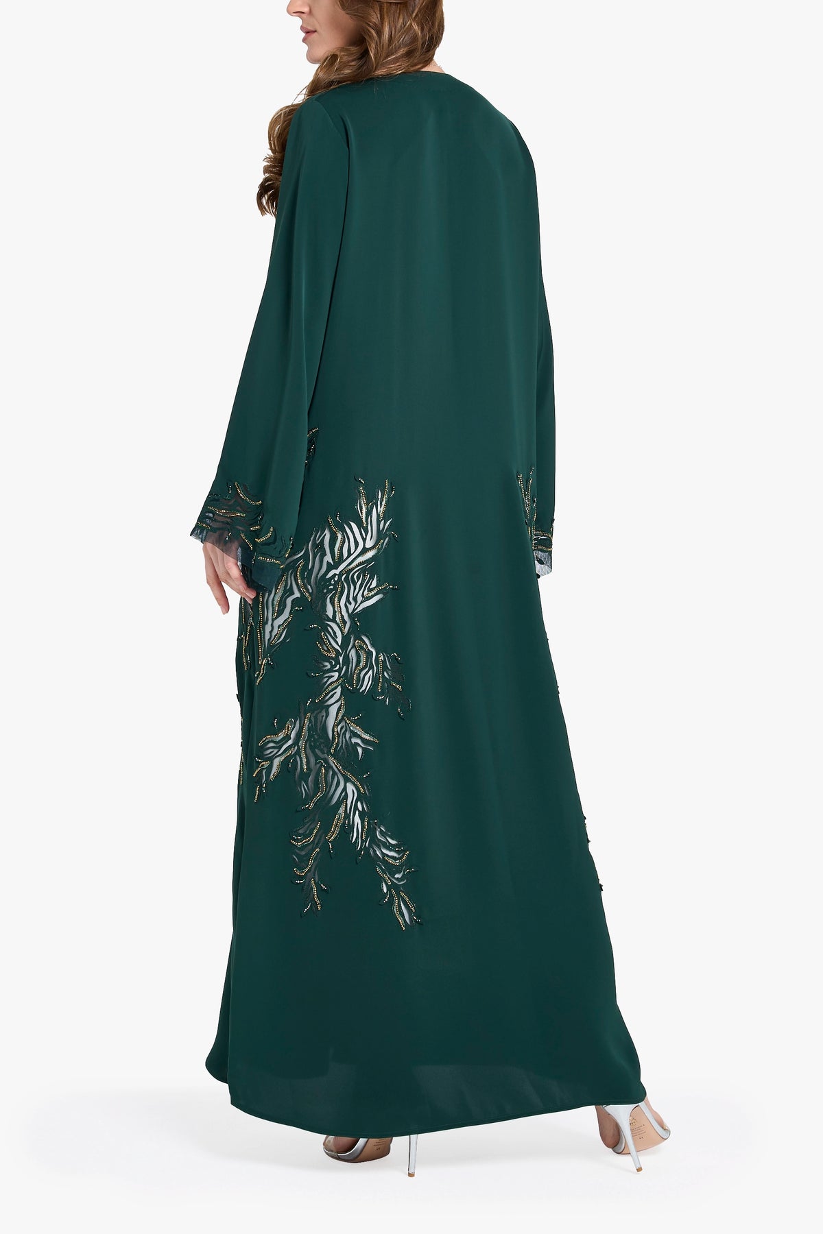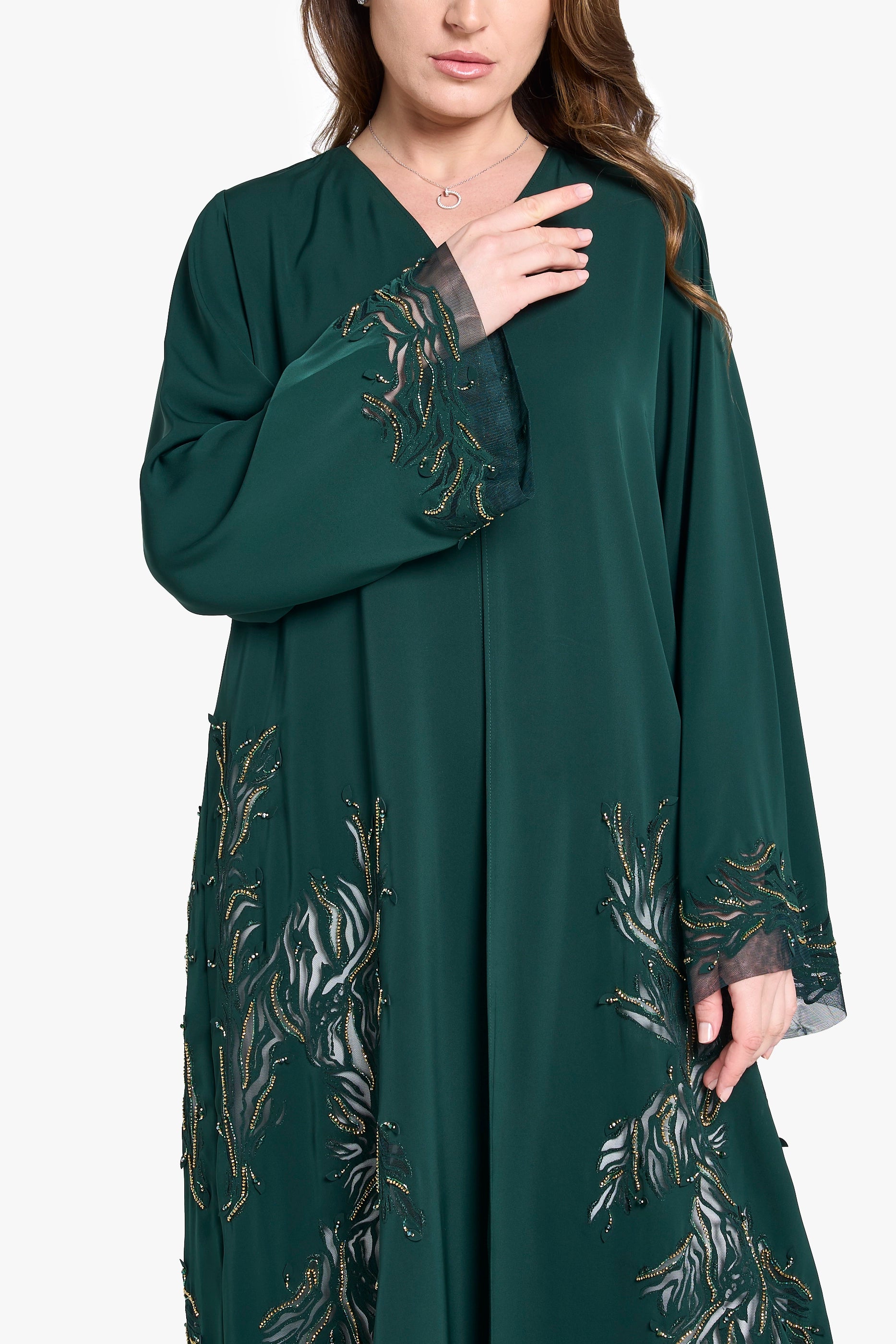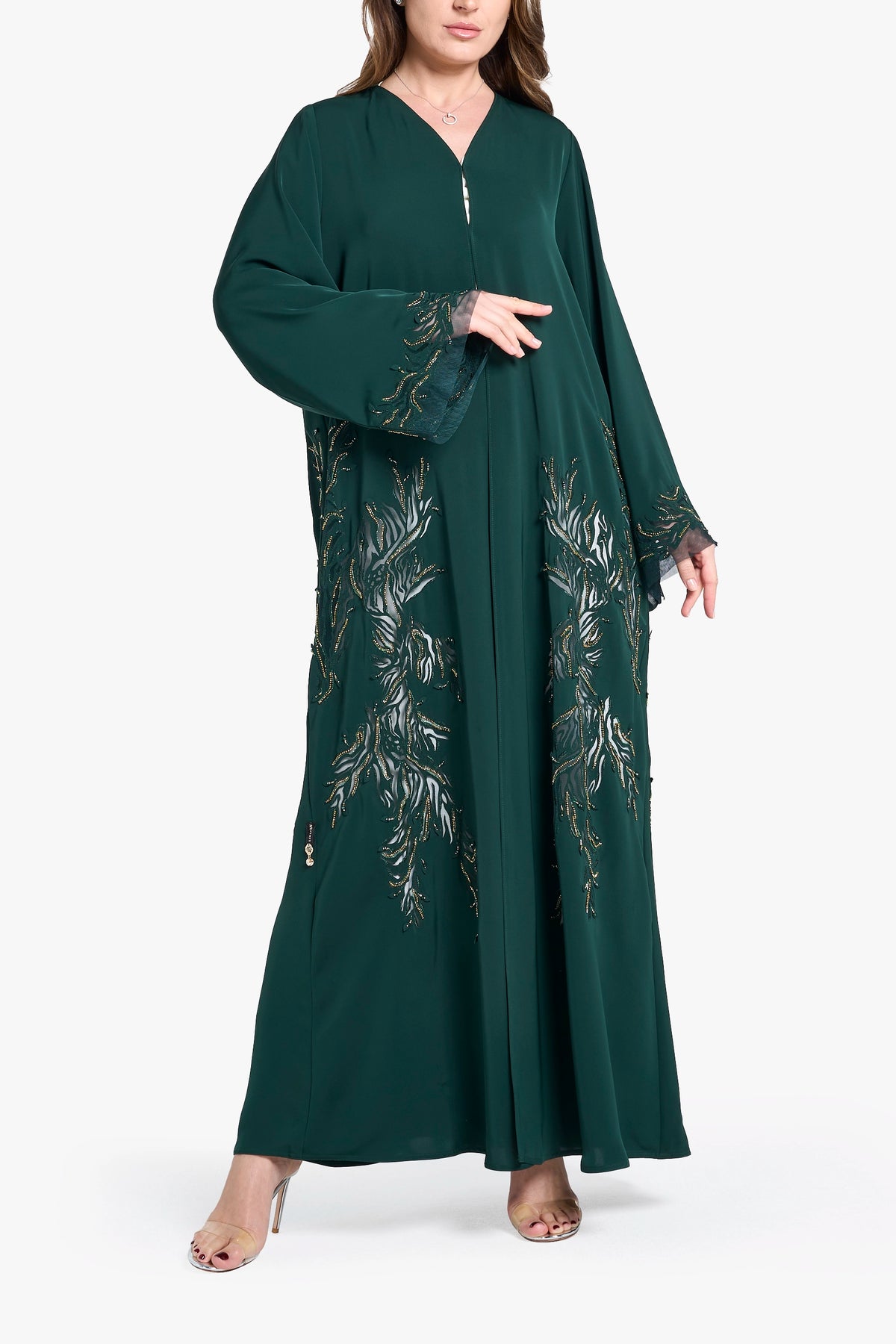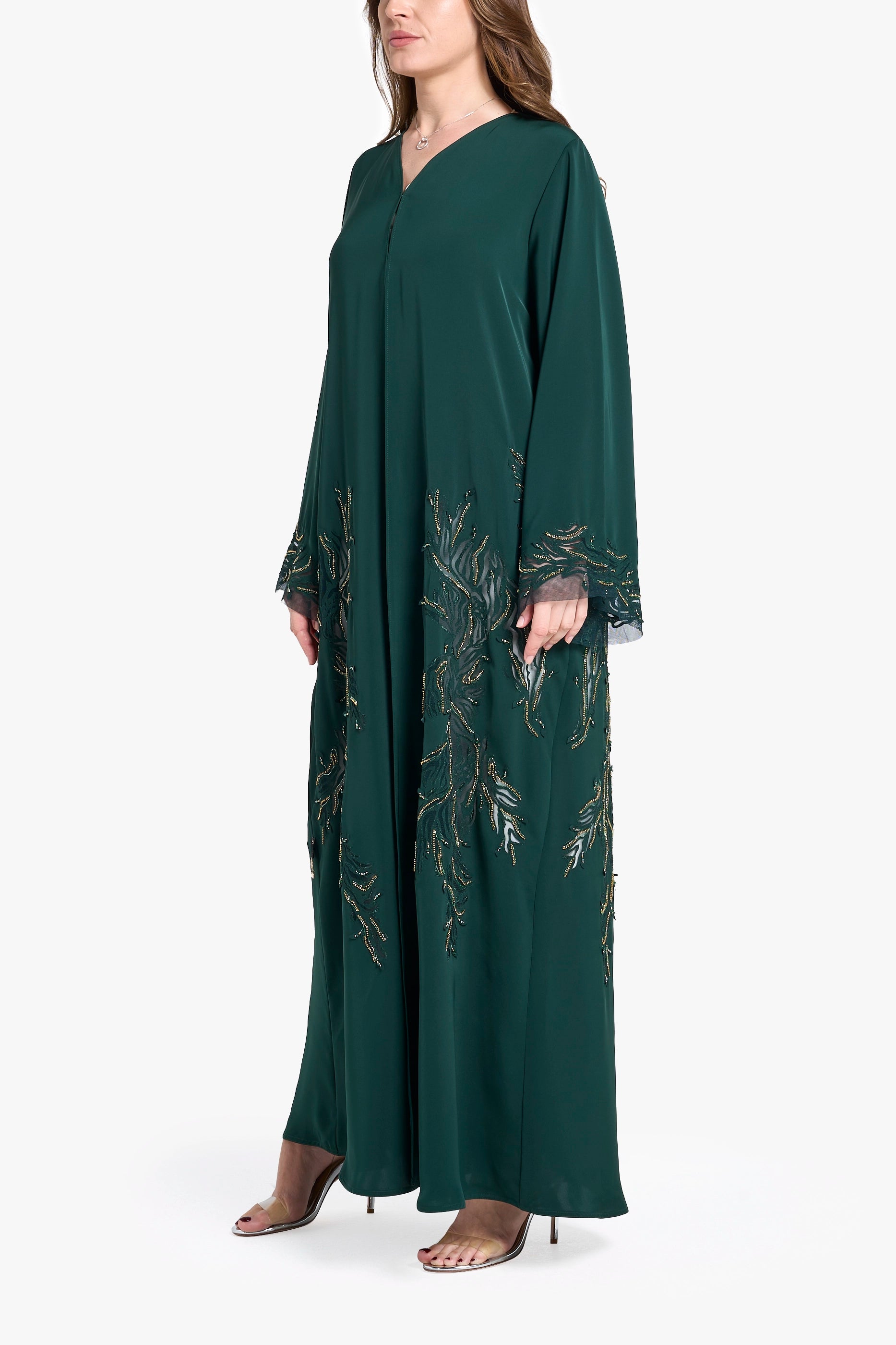 Elevate your modest fashion with our exquisite hand-embroidered Louzan abaya. Meticulously crafted with elegant color details and delicate handwork that showcases traditional artisanship. This sophisticated piece effortlessly combines timeless grace with contemporary style, perfect for special occasions or refined everyday wear.